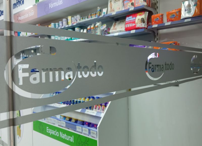 Cenefa con vinil esmerilado en vidrios, puntos de venta para franquicias o empresas.