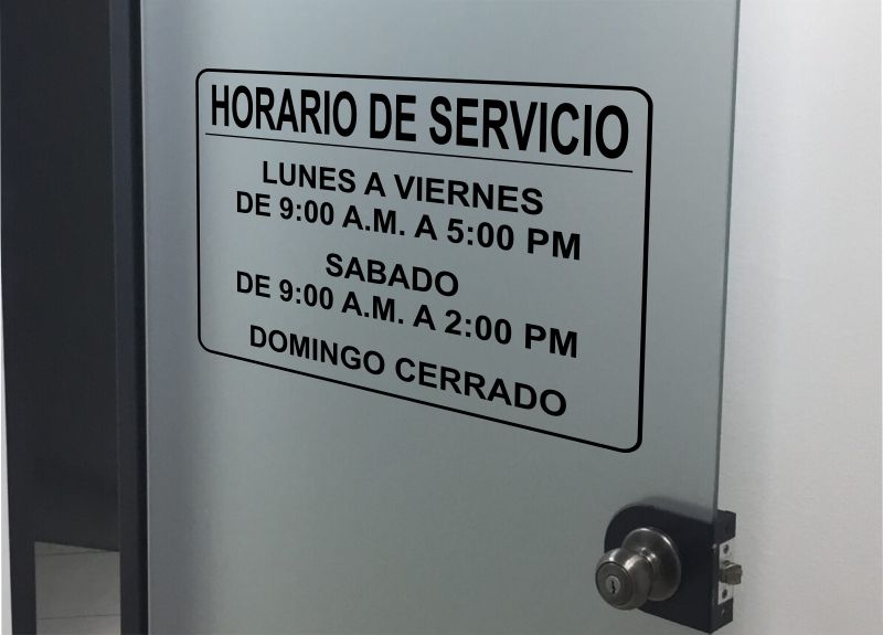 Rótulos en vinil esmerilado para vidrios o ventanas le ofrece una imagen elegante y fina con estilo moderno para cualquier cristal obteniendo una buena visibilidad sin impedir el paso de la luz.