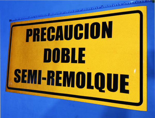 Rótulos en reflejante 3m, etiquetas, señales y señaletica para transporte de carga.(Precaucion doble semi-remolque)